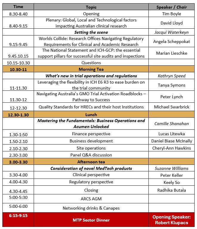 Following the Summit will be the ARCS Annual General Meeting (AGM) and the MedTech and Pharmaceutical (MTP) Sector Dinner.